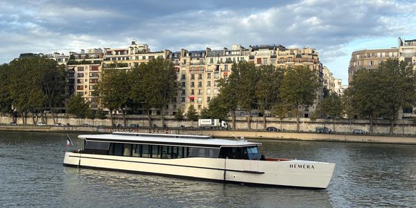 « Hemera », dernier fleuron 100 % électrique de la compagnie Esprit Seine conçu par Chenet Design et Architecture a défilé lors de la parade fluviale en prélude du « Vert le Fluvial », le colloque annuel consacré par Voies navigables de France (VNF) au verdissement de la flotte fluviale promu par la Communauté portuaire de Paris (CPP).